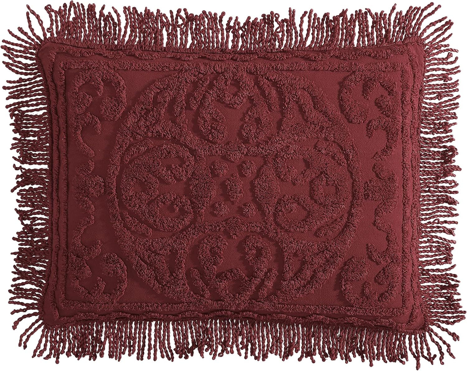 With its medallion and scroll design, the chenille Medallion king size pillow sham provides a sophisticated style with a touch of old-fashioned charm. Made from soft 100% cotton. Machine wash separately. Imported. Coordinating bedspread is sold separately.