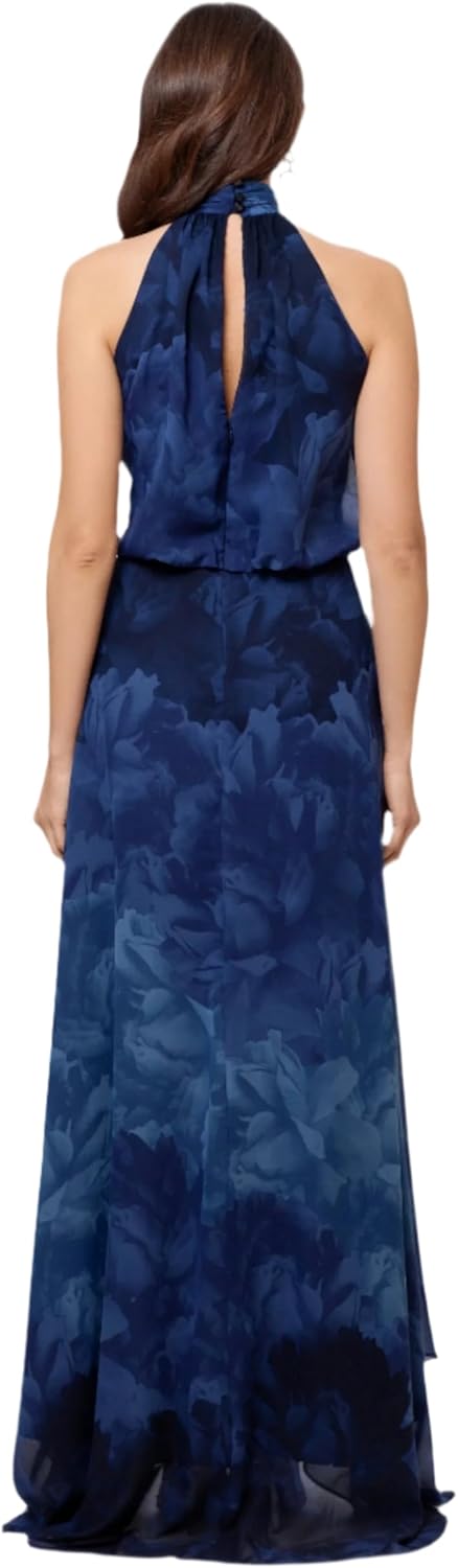 Elevate your evening look with this stunning halter neck maxi dress, perfect for formal events, weddings, or any special occasion. The high neckline and sleeveless design exude sophistication, while the flowing skirt adds an effortlessly glamorous touch. Featuring a flattering high slit, this dress allows for ease of movement and a subtle yet bold statement. The delicate floral print enhances its feminine charm, making it a versatile choice for both daytime and evening affairs. Whether paired with sparkling accessories or minimalist heels, this dress is designed to turn heads and leave a lasting impression.